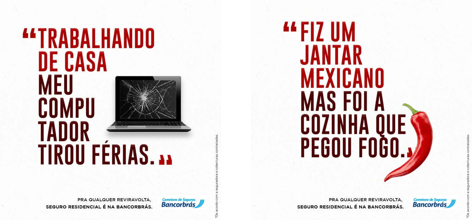 Utilizamos a ideia da imprevisibilidade da vida como o ponto central da nossa campanha. Trouxemos situações corriqueiras que pareciam ir bem, mas sofreram algum infortúnio inesperado. Com isso, traduzimos a ideia de que enquanto não temos uma bola de cristal para prever o futuro, é indispensável ter um seguro. Tudo isso com um toque de humor para deixar as situações mais leves e mostrar que é mais fácil enfrentar todas elas quando se tem um seguro comercializado pela Bancorbrás.