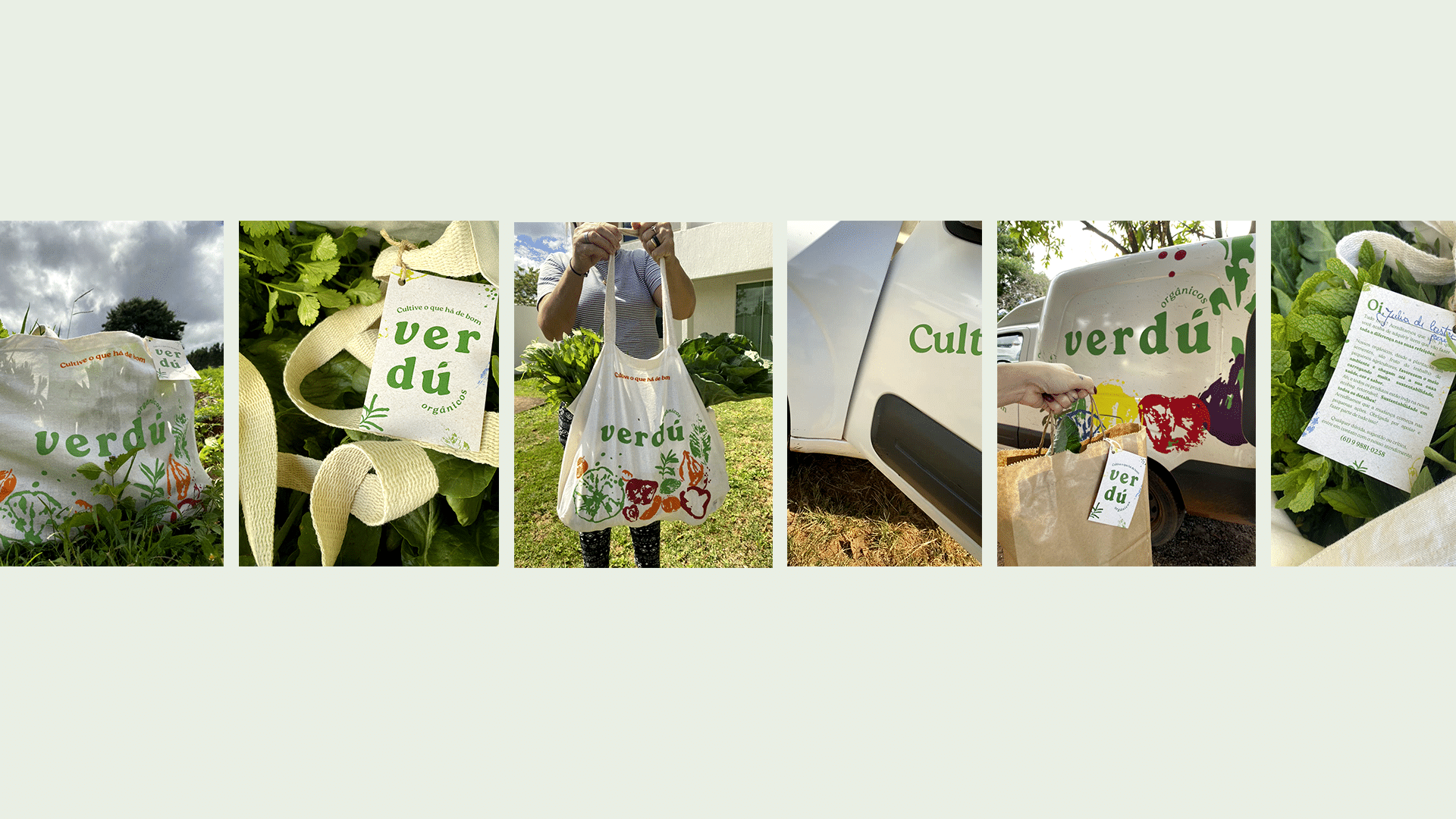 Apoiados em conceitos e práticas de agricultura familiar, redução de lixo e veneno, qualidade dos alimentos e praticidade, construímos um caminho único e autêntico para criar a personalidade de marca. Em seu nome, um apelido carinhoso da palavra "verdura" e da cor verde, tão presente neste universo. Assim nasce a marca Verdú Orgânicos, um delivery que leva a agricultura familiar de orgânicos do campo para a mesa de cada pessoa. Cultivando o que há de bom!